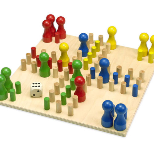 stabile Holzplatte gedruckt. Die Spielfiguren sind