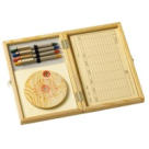 4 Bleistifte, Block und Spitzer in Holzkassette